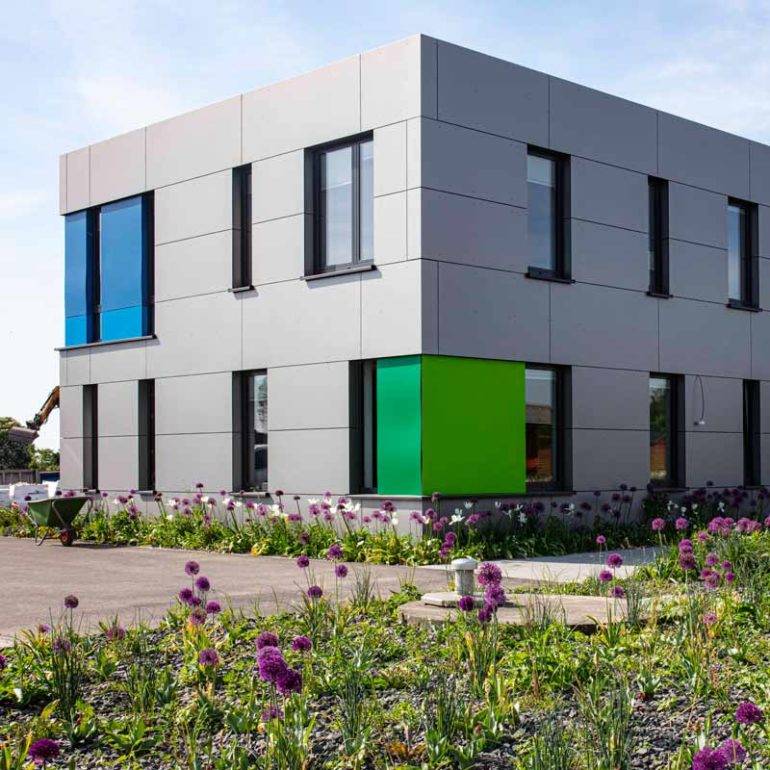 Gestaltung des Außenbereichs des neuen Firmengebäudes